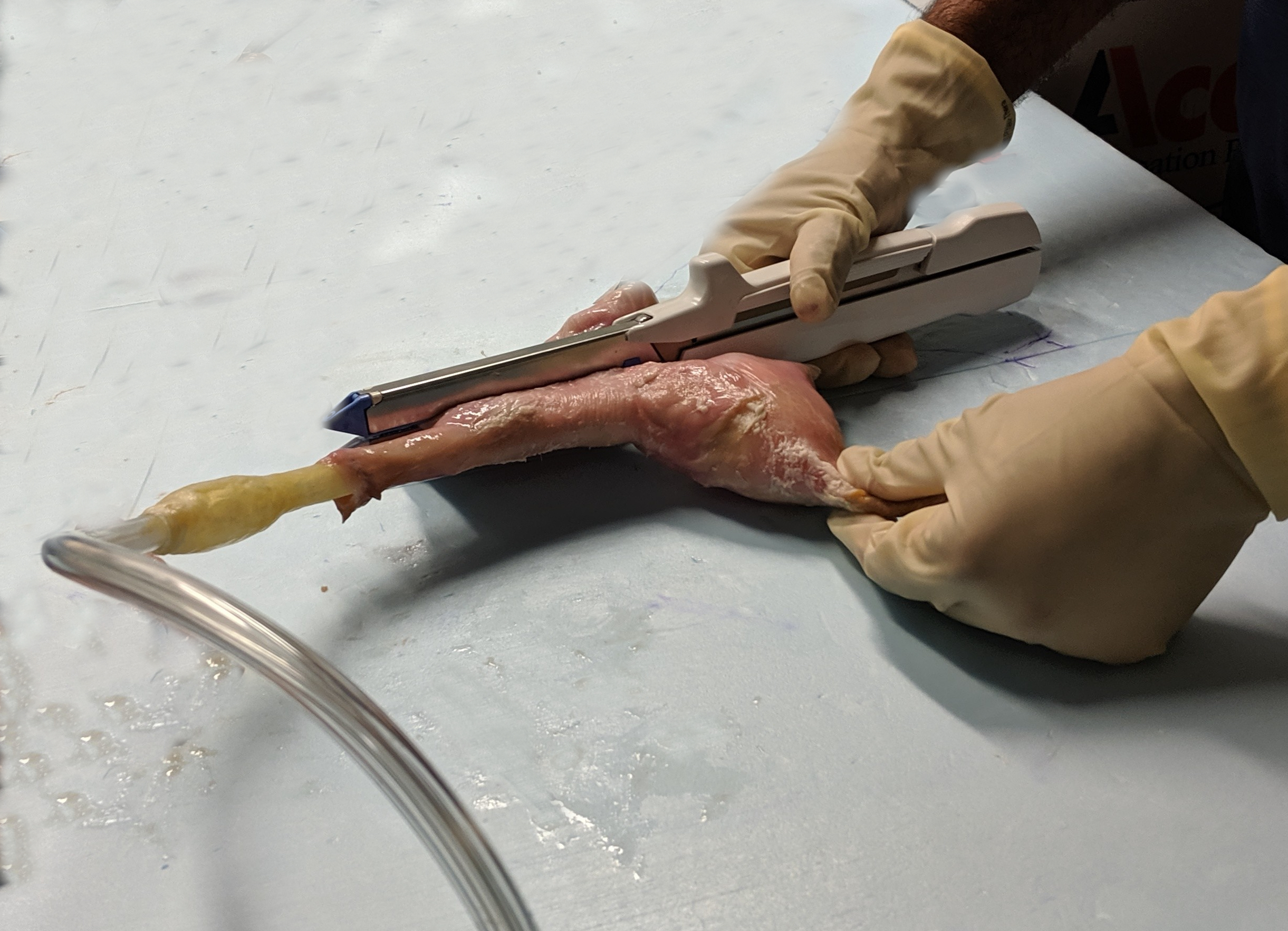 Significant variation in gastric sleeve volumes due to surgical technique can lead to suboptimal outcomes for patients Direct control over volume displacement and real-time pressure readings may lead to improved consistency of sleeve results Device incorporates specially-designed balloons connected through tubing to pressure sensors on a custom PCB which interfaces with device via USB Balloon molds created in CAD and 3D printed PCB designed with EDA software, incorporates commercially-available pressure sensors and an Arduino Micro running C++ code GUI created using Python 2.7 Preliminary testing in porcine gastric explants, see study here U.S. Provisional Pat. Ser. No. 62806933 First-generation (obsolete) balloon and tubing schematic